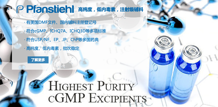 “熱烈祝賀Pfanstiehl的注射級甘氨酸Glycine(G-140)喜獲CDE登記號F20250000403, 這是Pfanstiehl產品獲得的第18個CDE登記號!”甘氨酸在醫藥輔料制劑中應用廣泛,, 可作為緩沖劑,增溶劑,穩定劑等,具有諸多優勢。Pfanstiehl秉承一貫高品質理念,為滿足全球生物制藥行業對于高品質甘氨酸的需求,隆重推出的注射級甘氨酸Glycine (G-140), 具有超高純度,超低內毒素,超低金屬殘留的特點,單獨檢測29種金屬離子,并且新增DNA,RNA,DNA酶,RNA酶和脂肪酶,亞硝酸鹽等多項質量指標的檢測,符合多國藥典規定(USP, EP, BP, JPE, ChP),可用于生物治療性藥物和疫苗的生產。產品信息:· 產品名稱:Glycine, High Purity, Low Endotoxin, Low Metals, USP, EP, BP, JPE, ChP (G-140)· 中文名稱:甘氨酸· 分子式:C2H5NO2· 分子量:75.07 g / mol· CAS號:56-40-6· 產品貨號:G-140產品特點: · 超高純度,超低內毒素,超低微生物含量,超低金屬雜質殘留· 質量指標新增DNA,RNA,DNA酶,RNA酶,脂肪酶和亞硝酸鹽檢測· 符合多國藥典:USP, EP, BP, JPE, ChP· 符合ICH Q3D標準· 符合GMP標準· 已獲DMF和CDE登記號 產品應用:· 緩沖劑· 穩定劑· 增溶劑如果您對Pfanstiehl注射級別Glycine G-140感興趣,歡迎聯系Pfanstiehl 中國區代理商北京西美杰科技有限公司獲得如下詳細的產品概況說明文件和測試樣品。Pfanstiehl Inc.最新產品系列如下,歡迎聯系北京西美杰科技有限公司獲取100g裝免費樣品。北京西美杰科技有限公司為Pfanstiehl中國代理,為客戶提供完善的技術支持與售后服務。歡迎撥打西美杰客服電話400-050-4006或者登陸網站www_xmjsci_com.java2v.com了解更多信息。 更多>